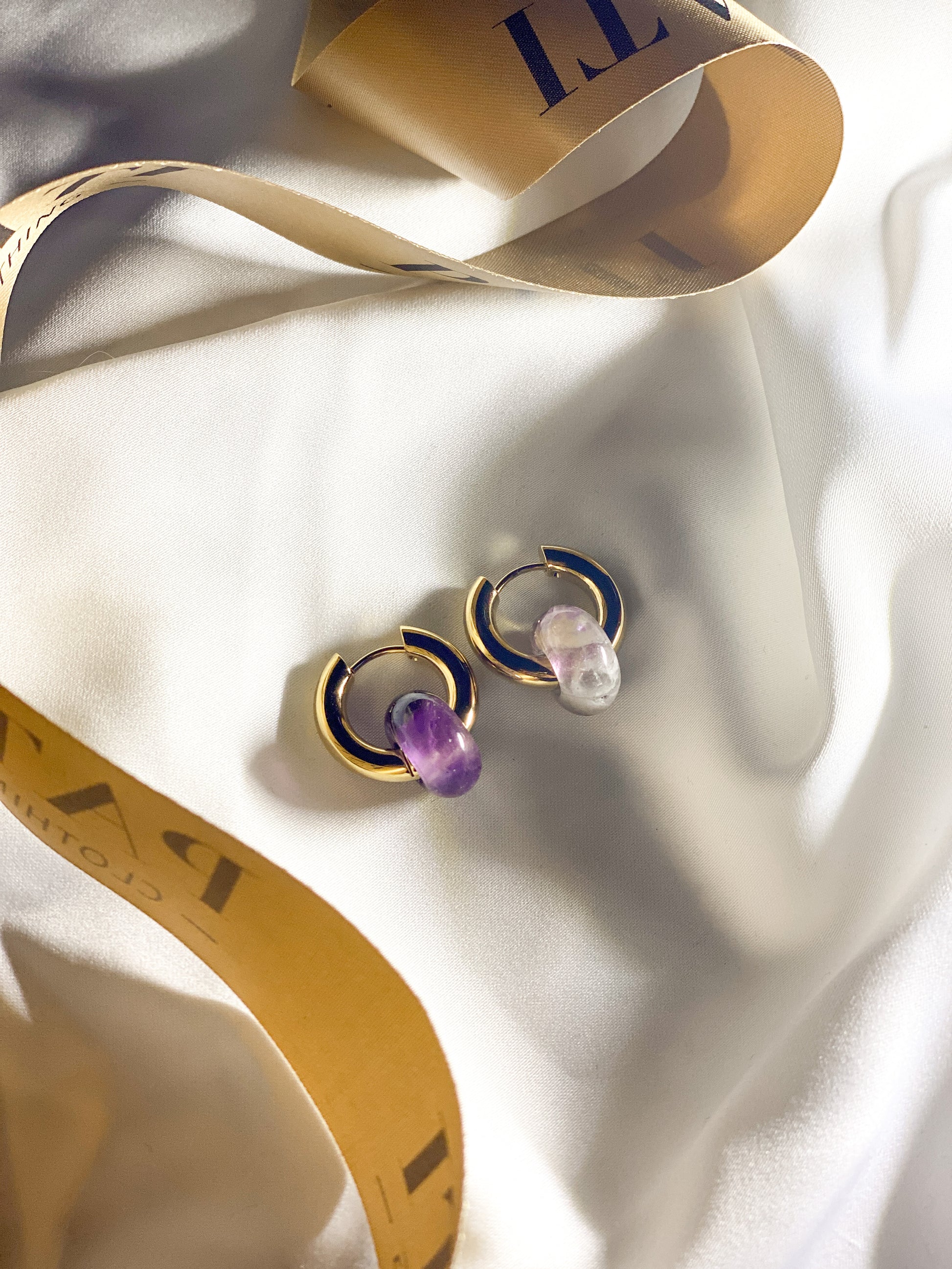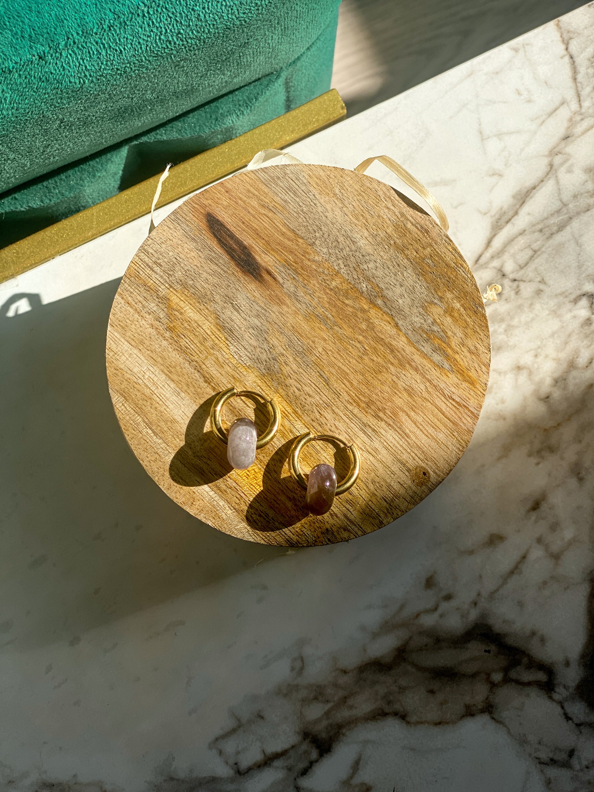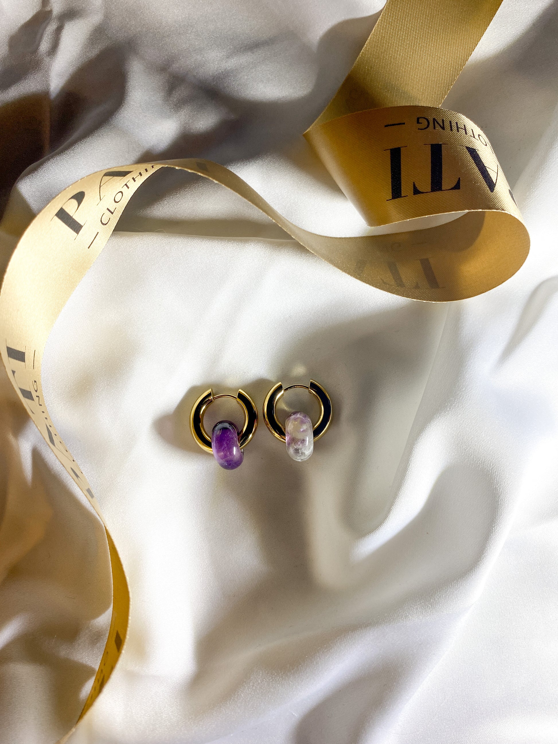 The collection of natural stones. Elegant stainless steel transformable earrings that can be combined in 3 different variations.