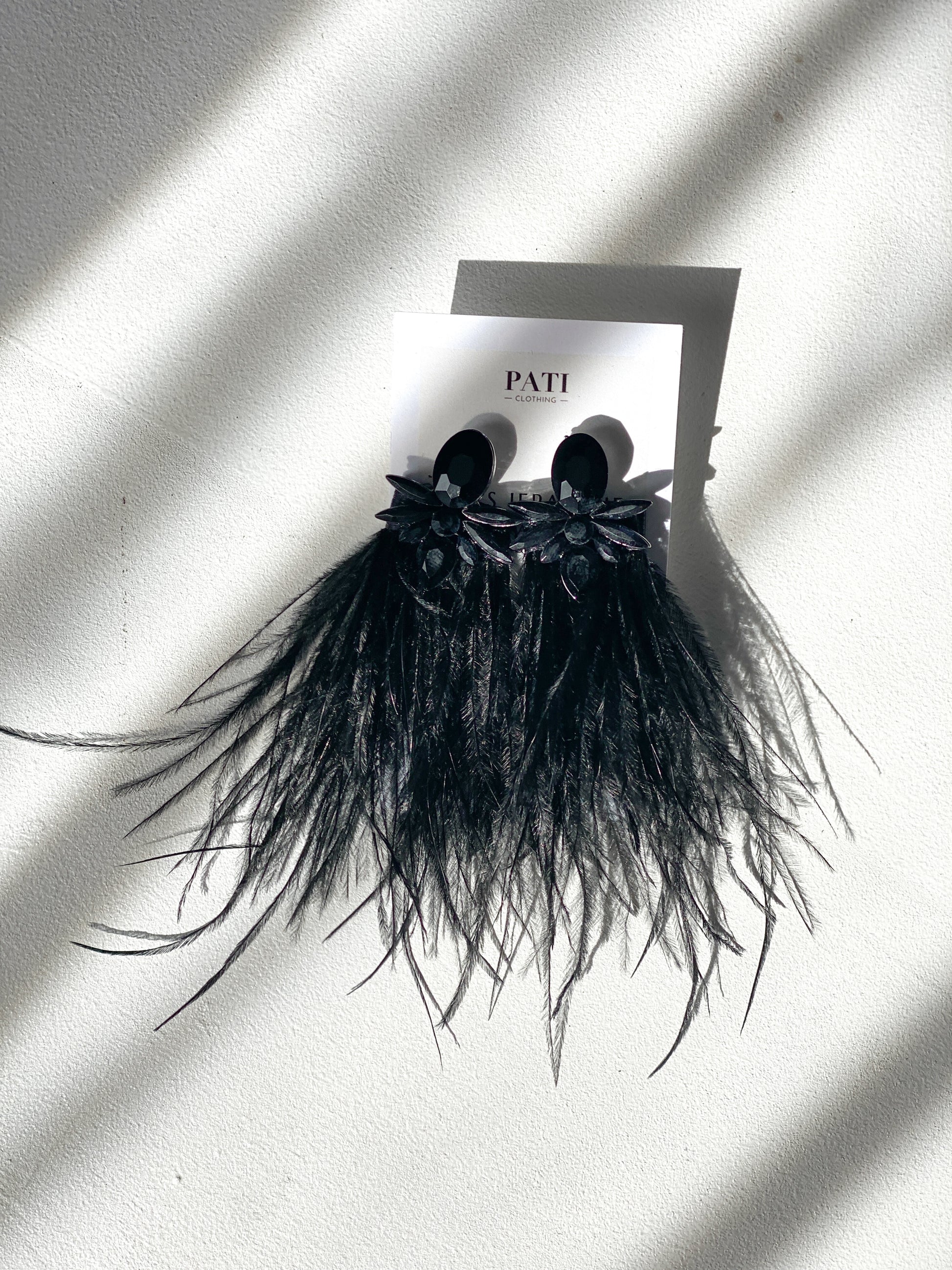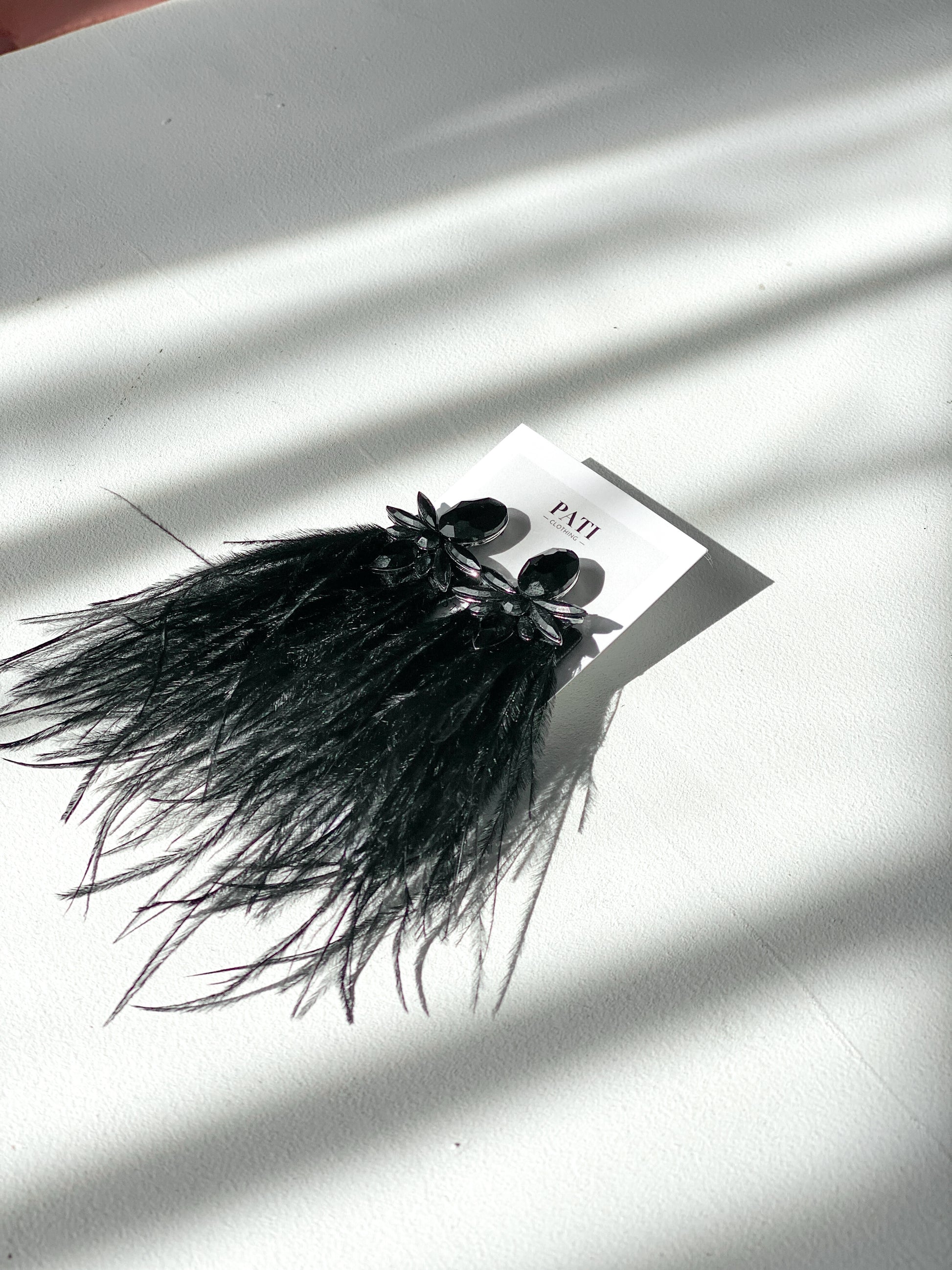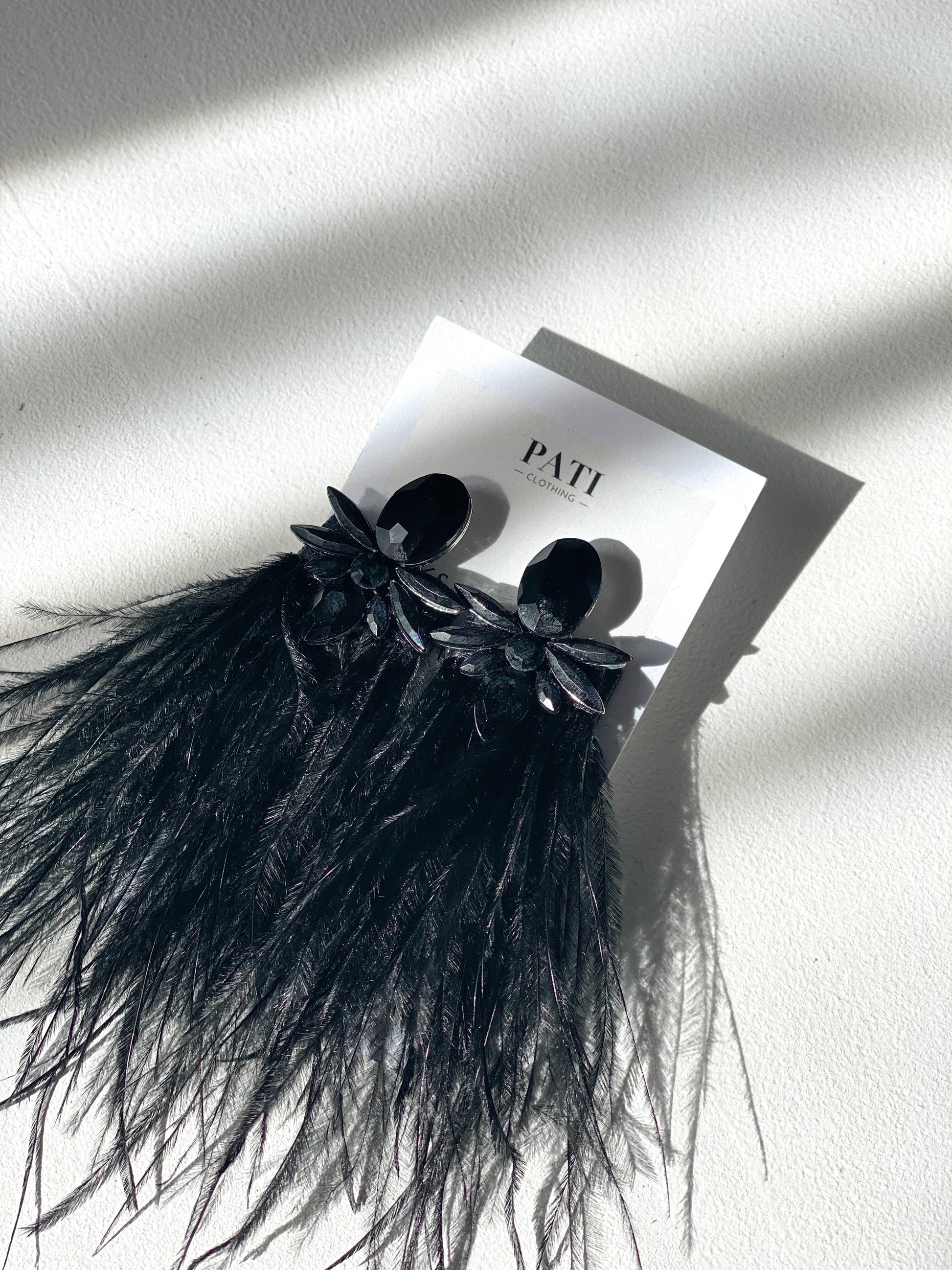 All PATI earrings are uniquely designed, combining high-quality crystals with natural ostrich feathers.