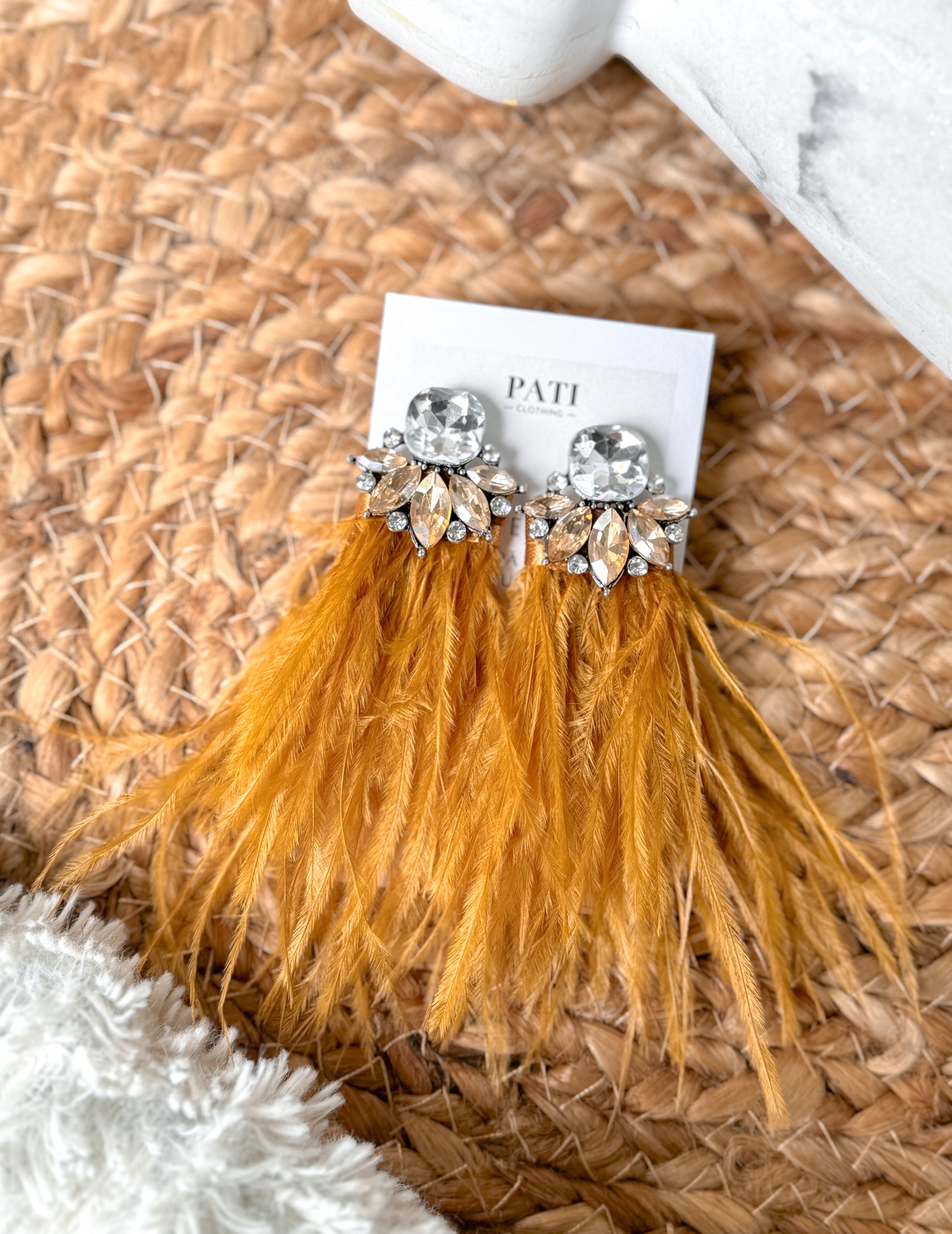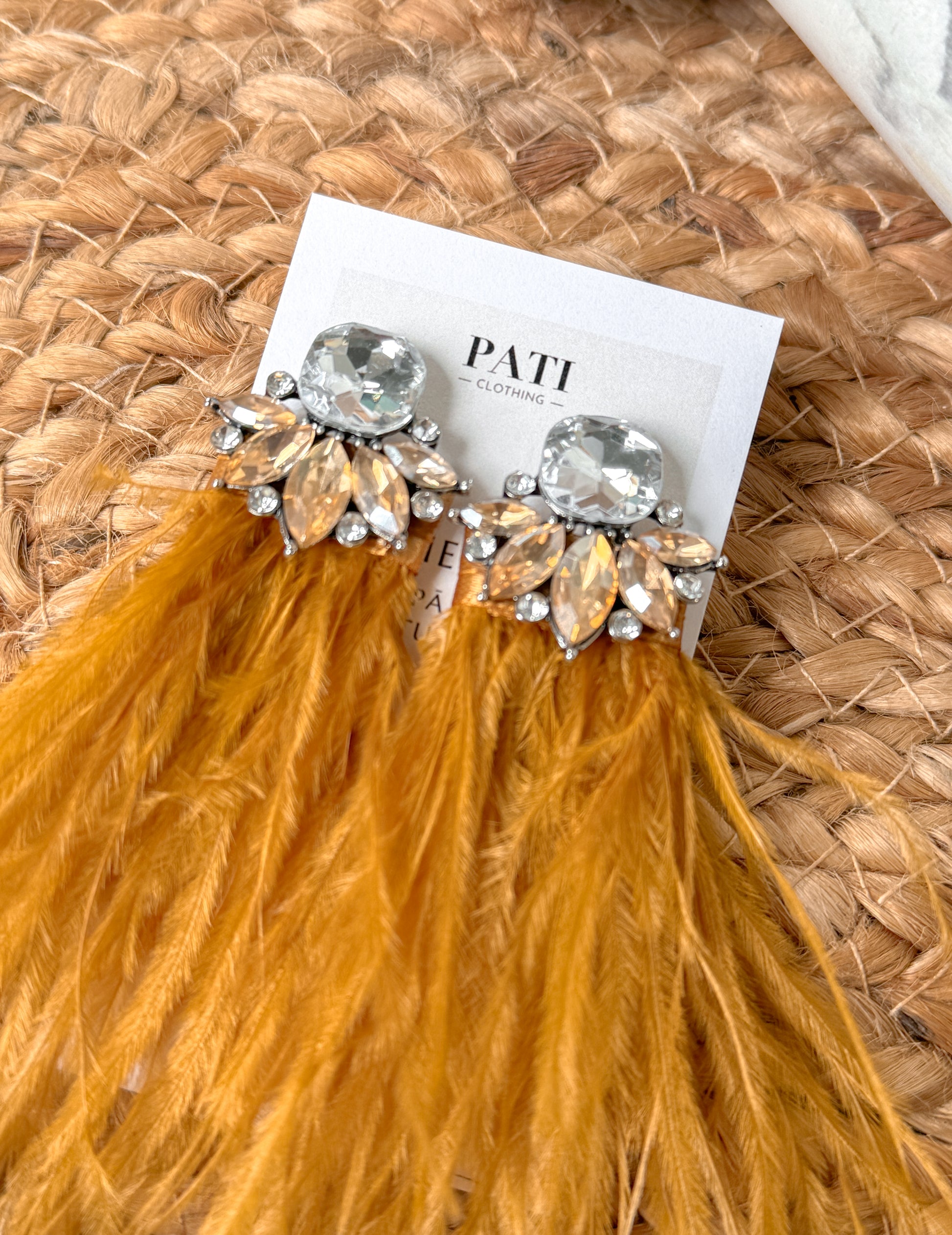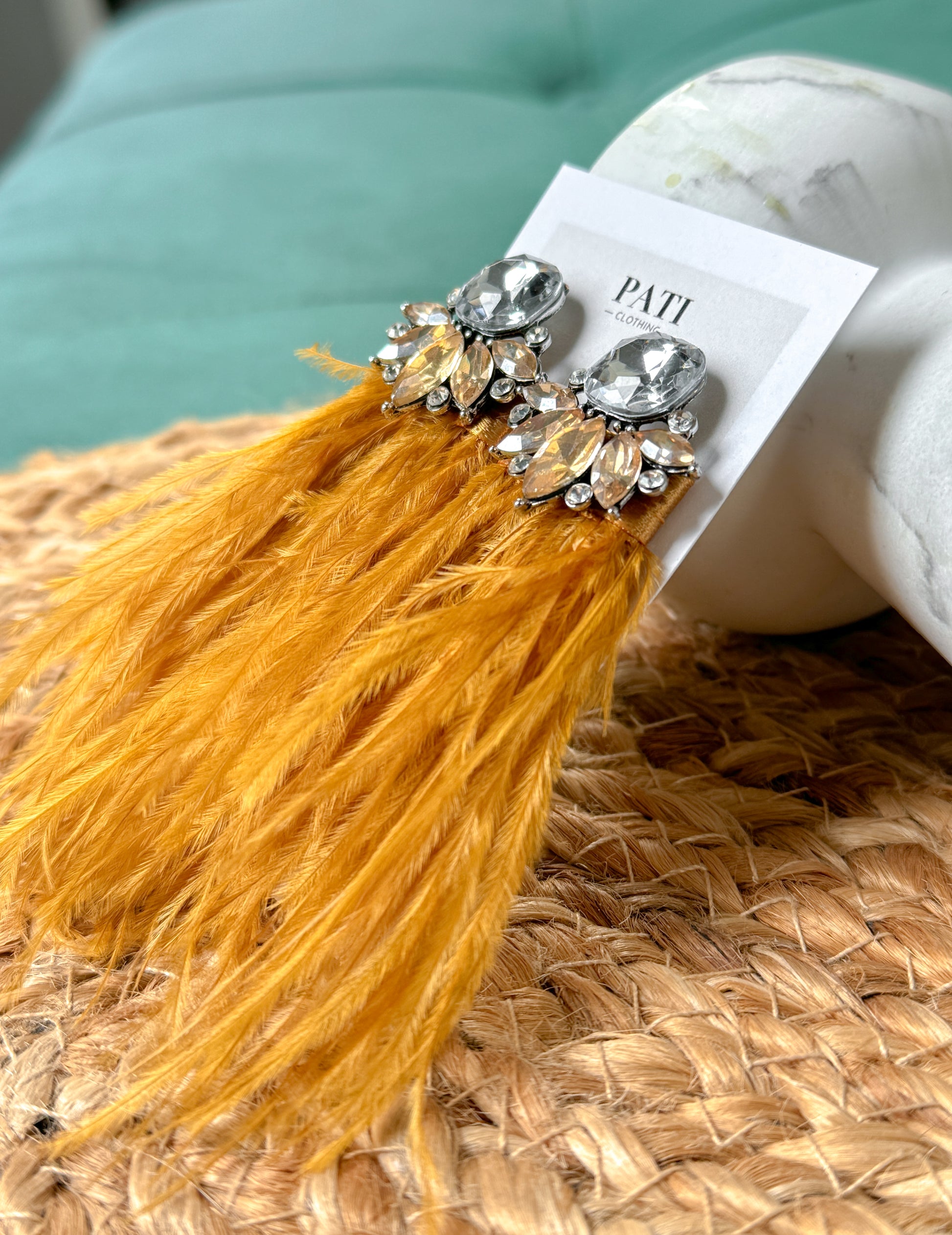 All PATI earrings are uniquely designed, combining high-quality crystals with natural ostrich feathers.
