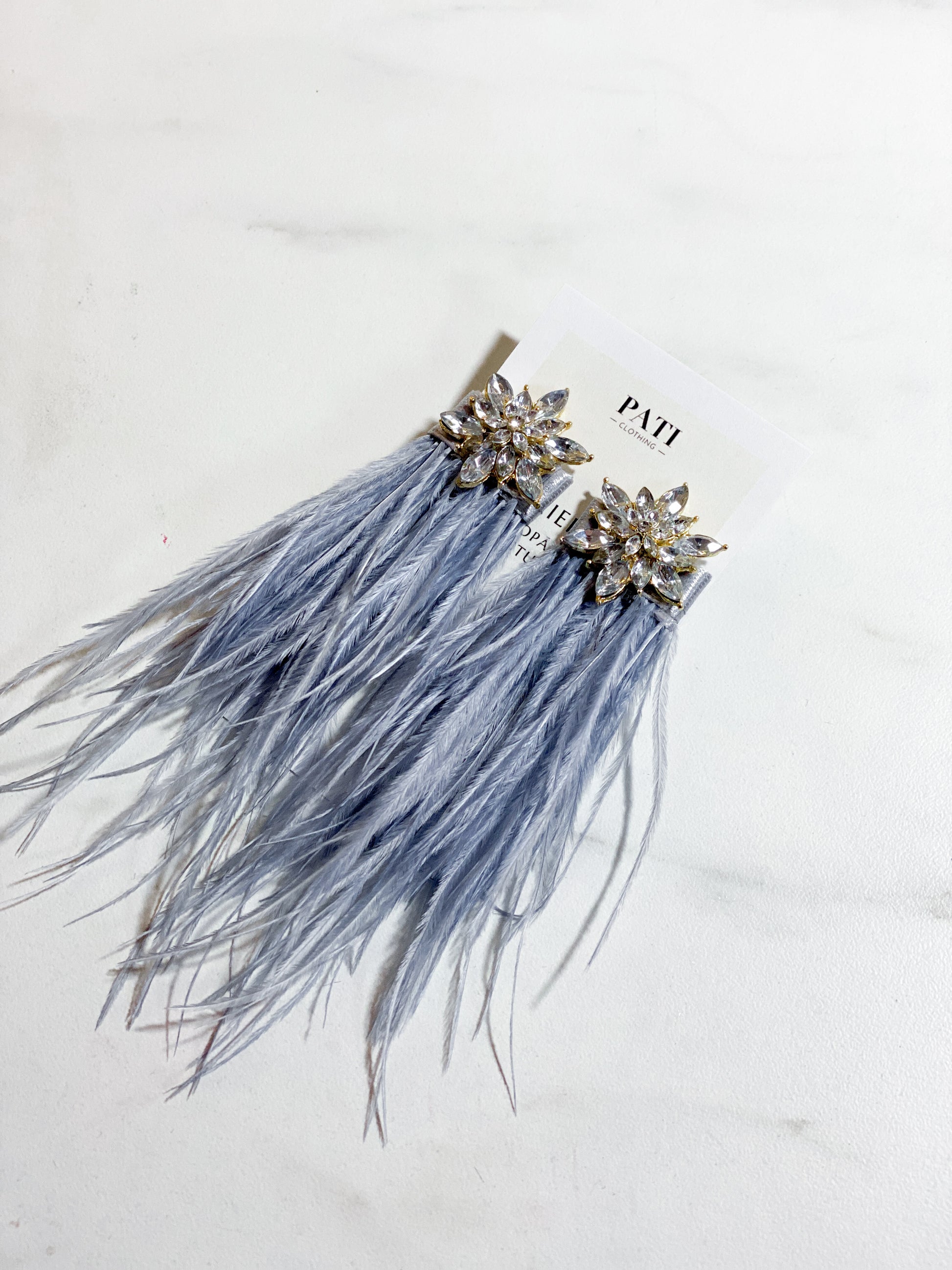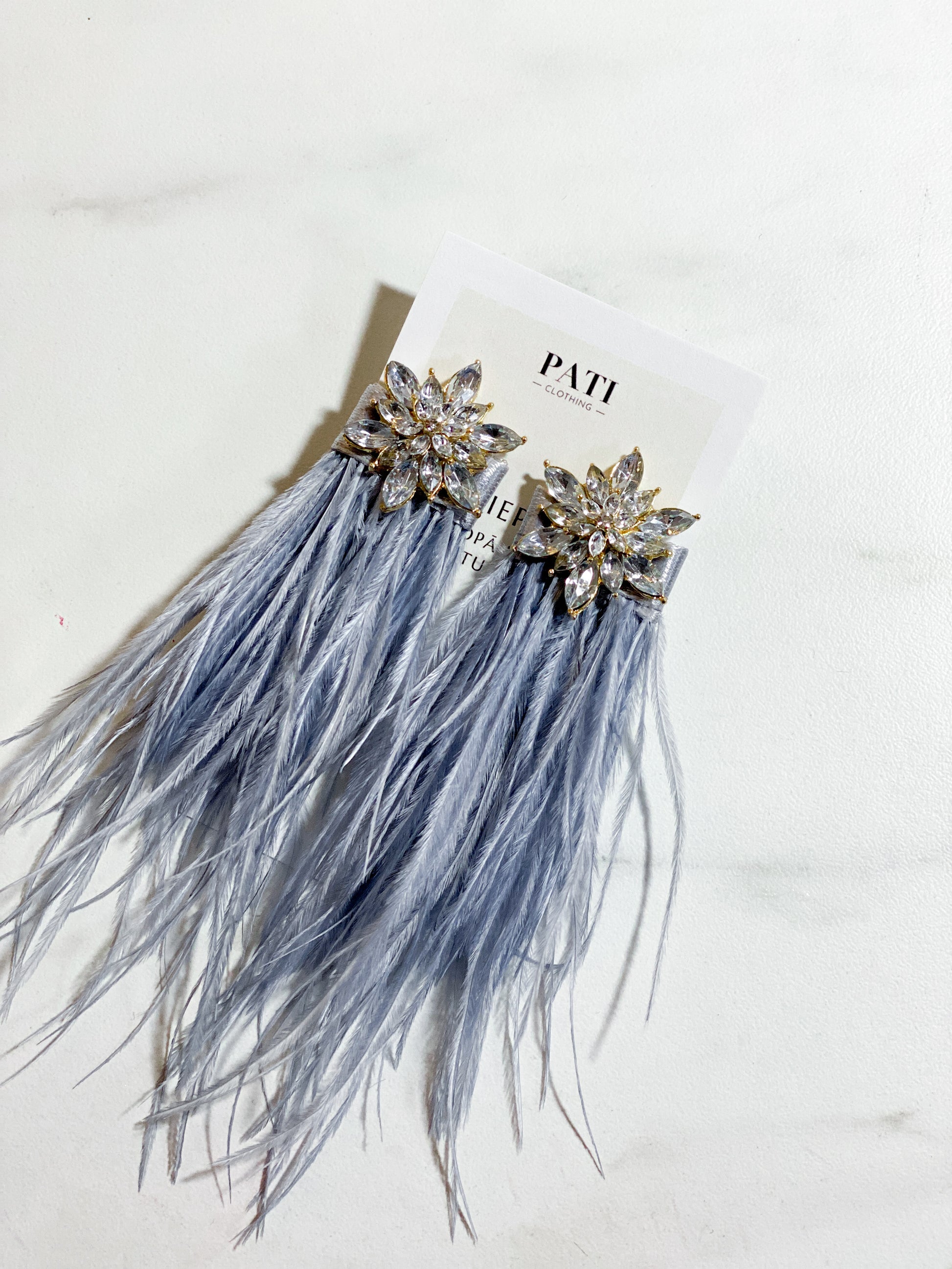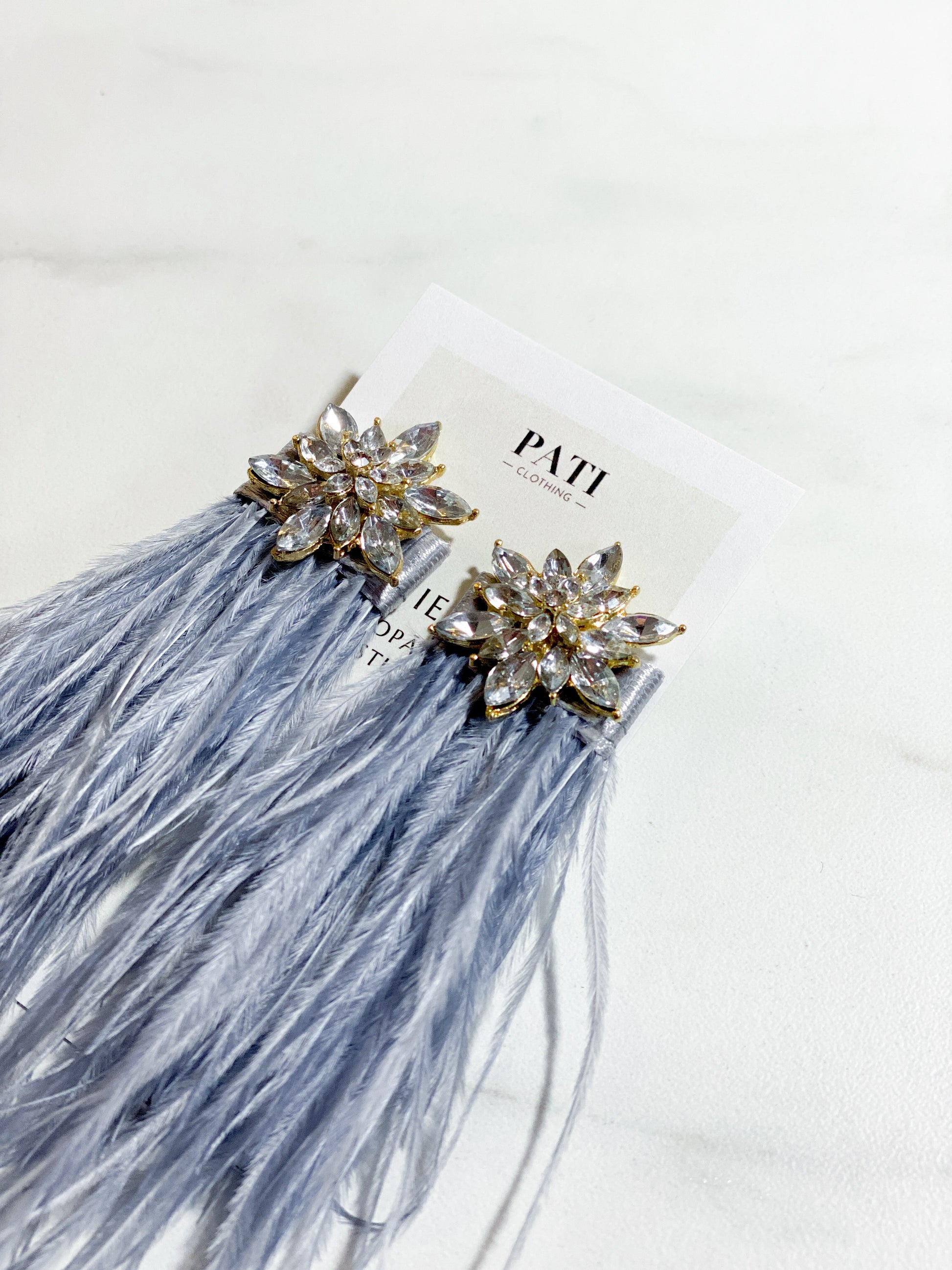 All PATI earrings are uniquely designed, combining high-quality crystals with natural ostrich feathers.
