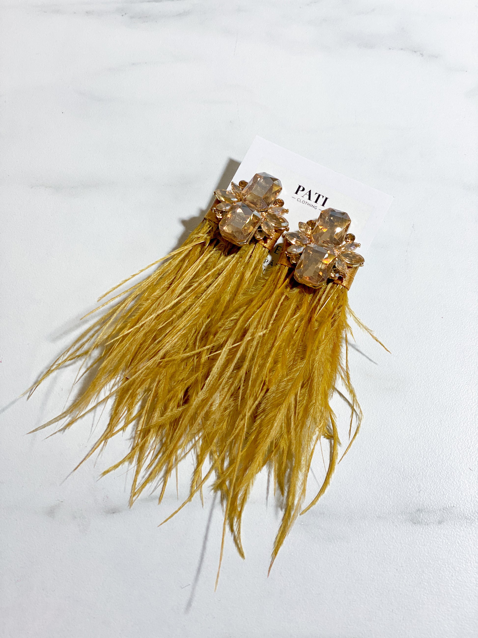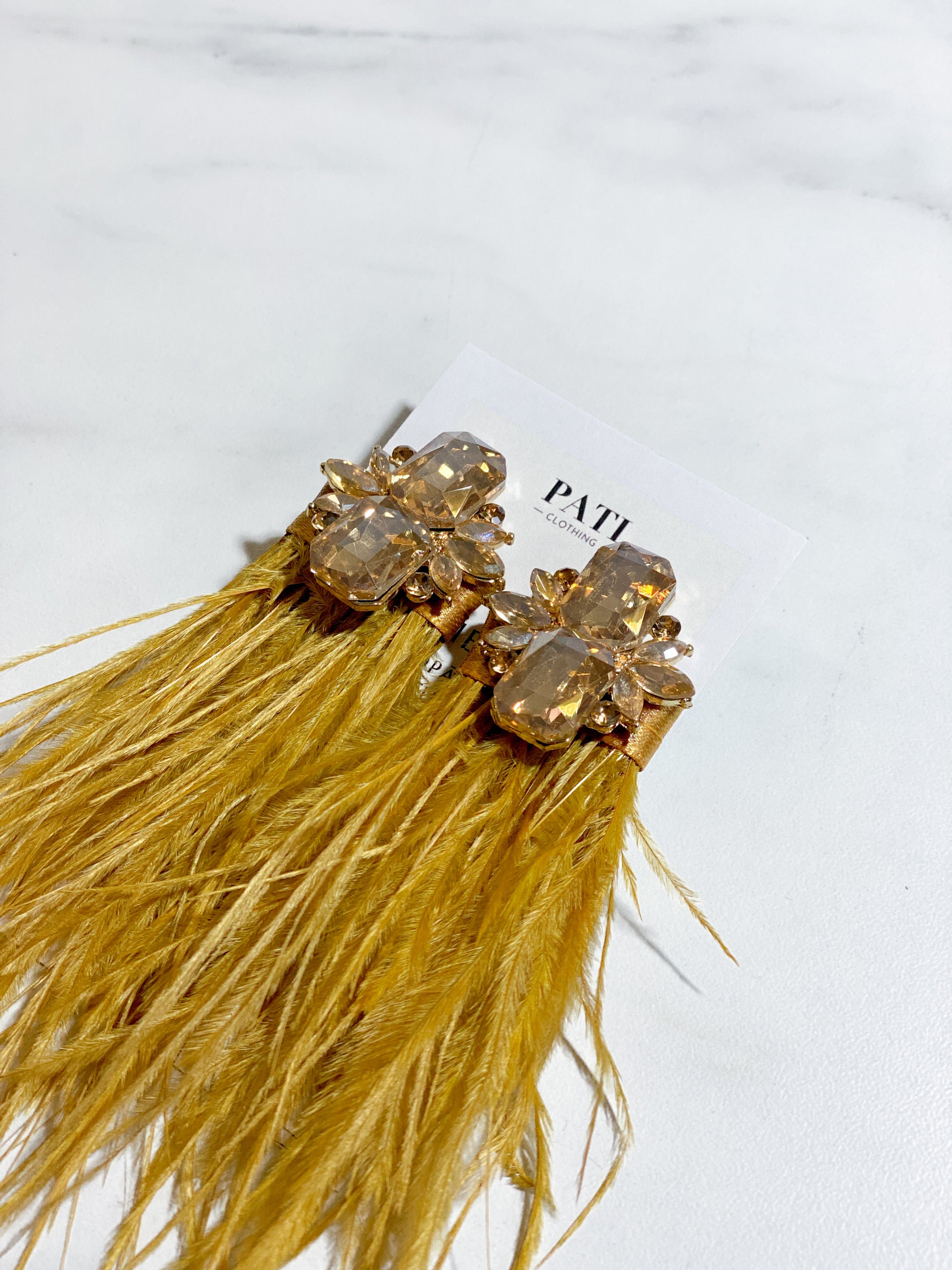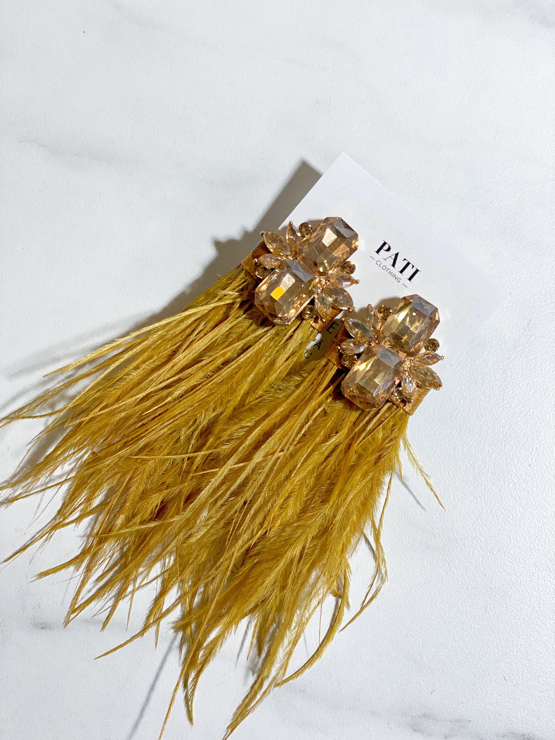 All PATI earrings are uniquely designed, combining high-quality crystals with natural ostrich feathers.