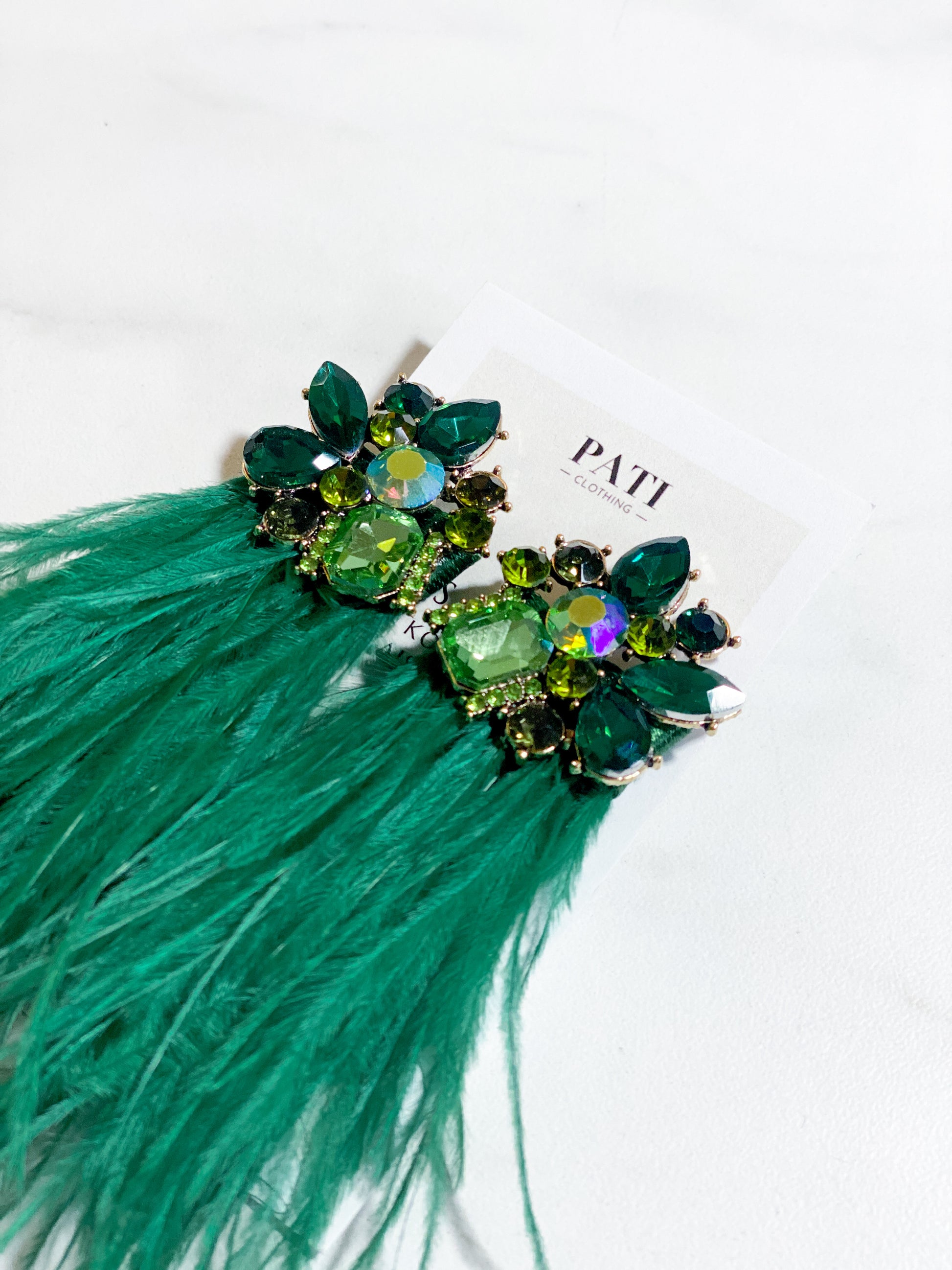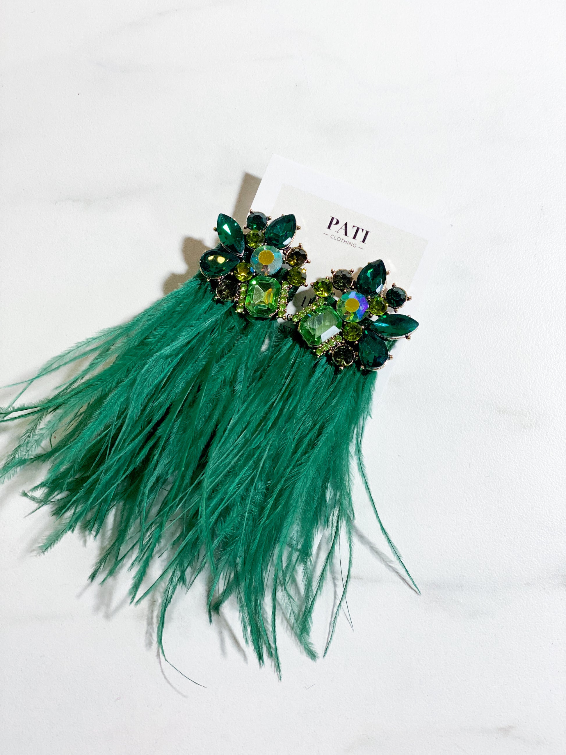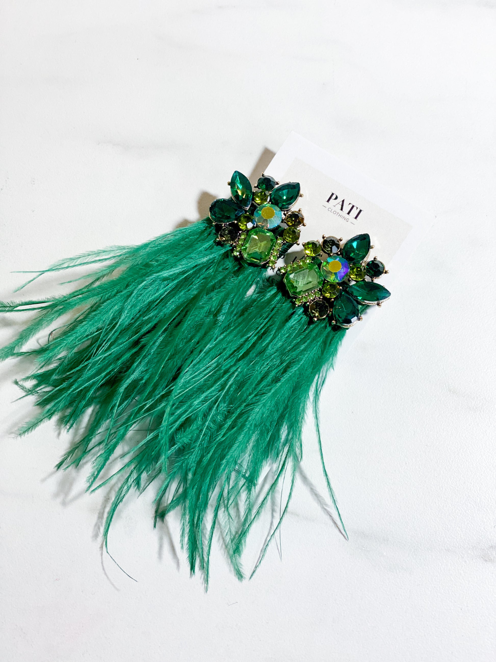 All PATI earrings are uniquely designed, combining high-quality crystals with natural ostrich feathers.