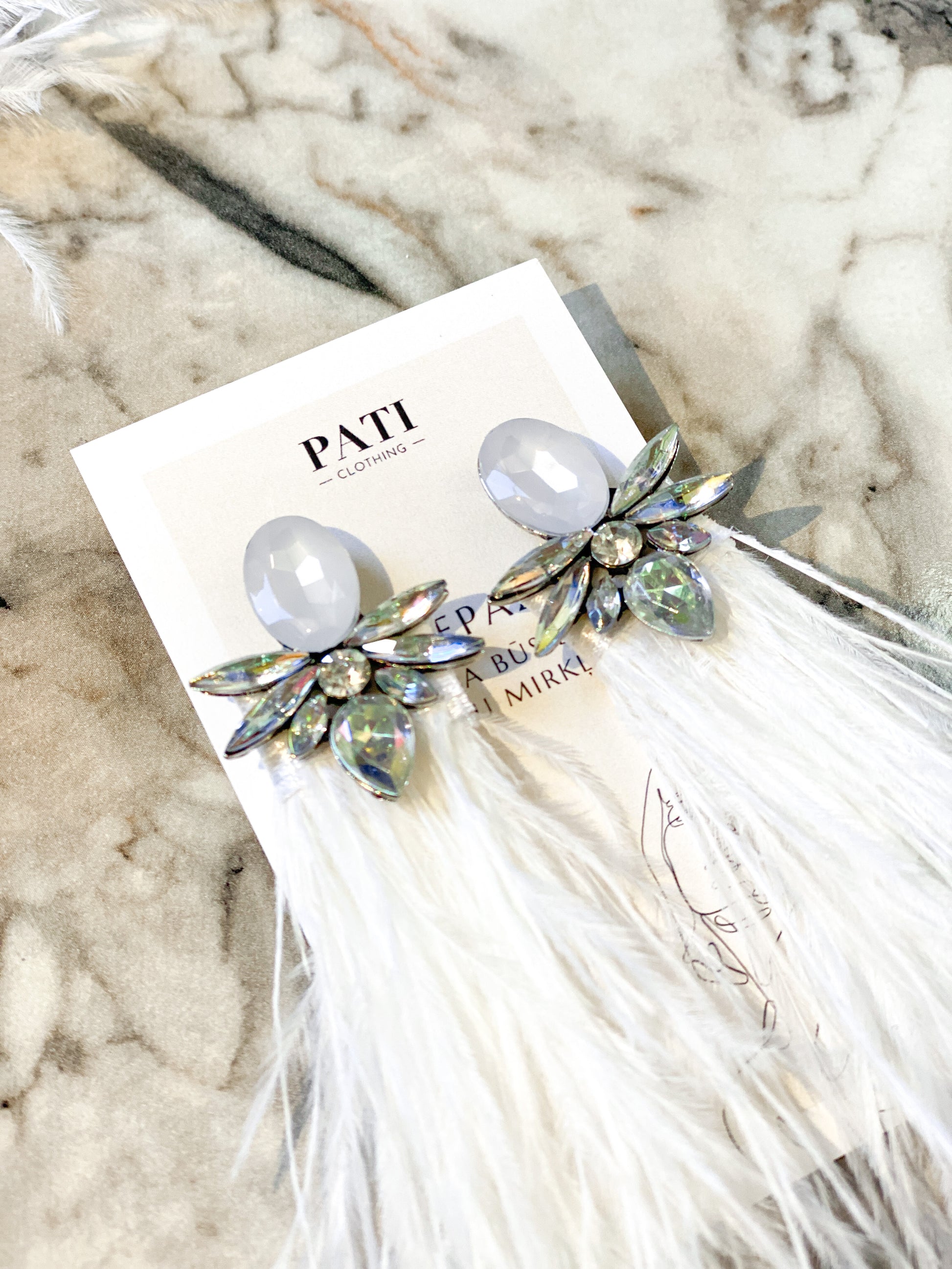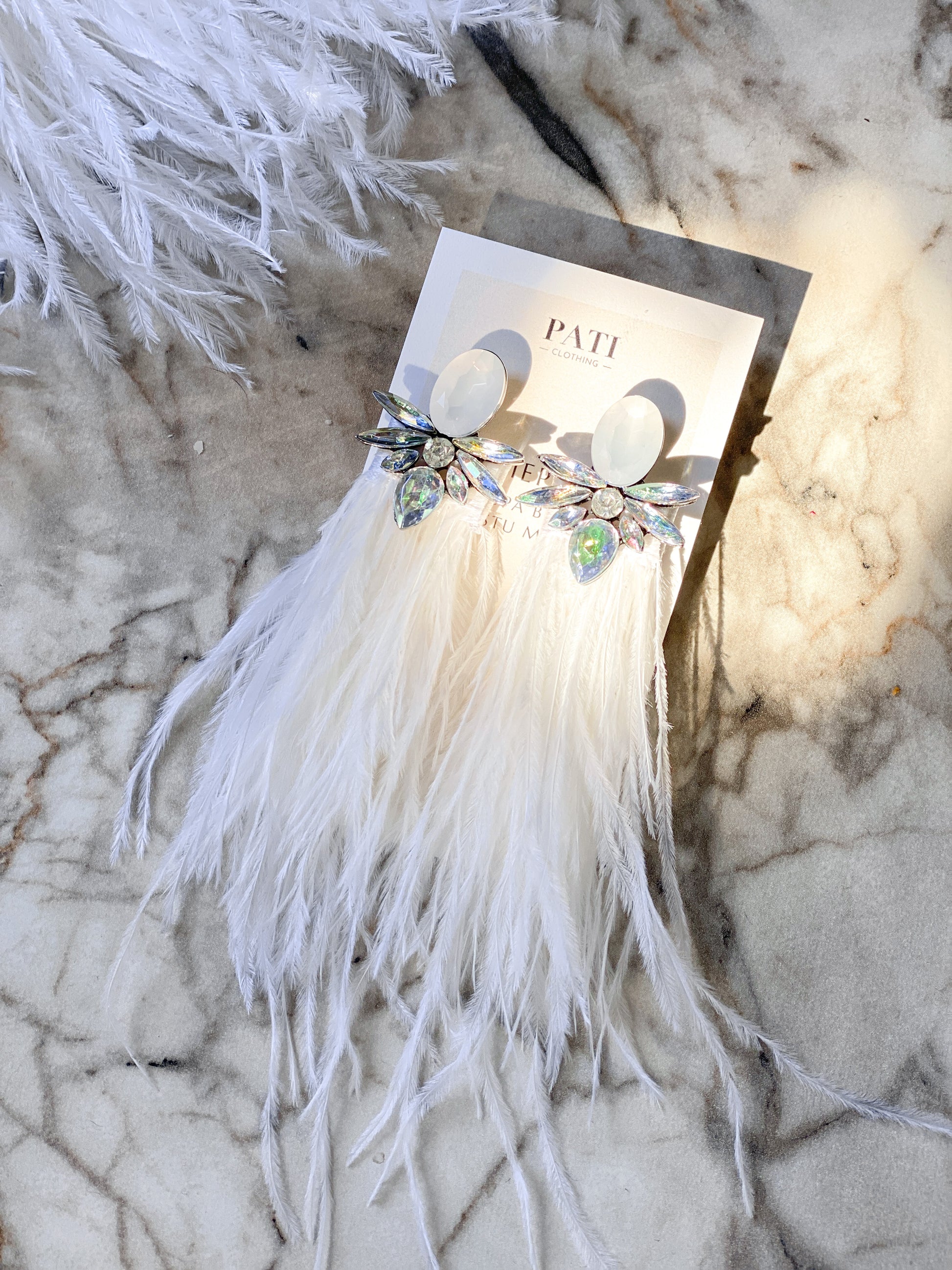 All PATI earrings are uniquely designed, combining high-quality crystals with natural ostrich feathers.