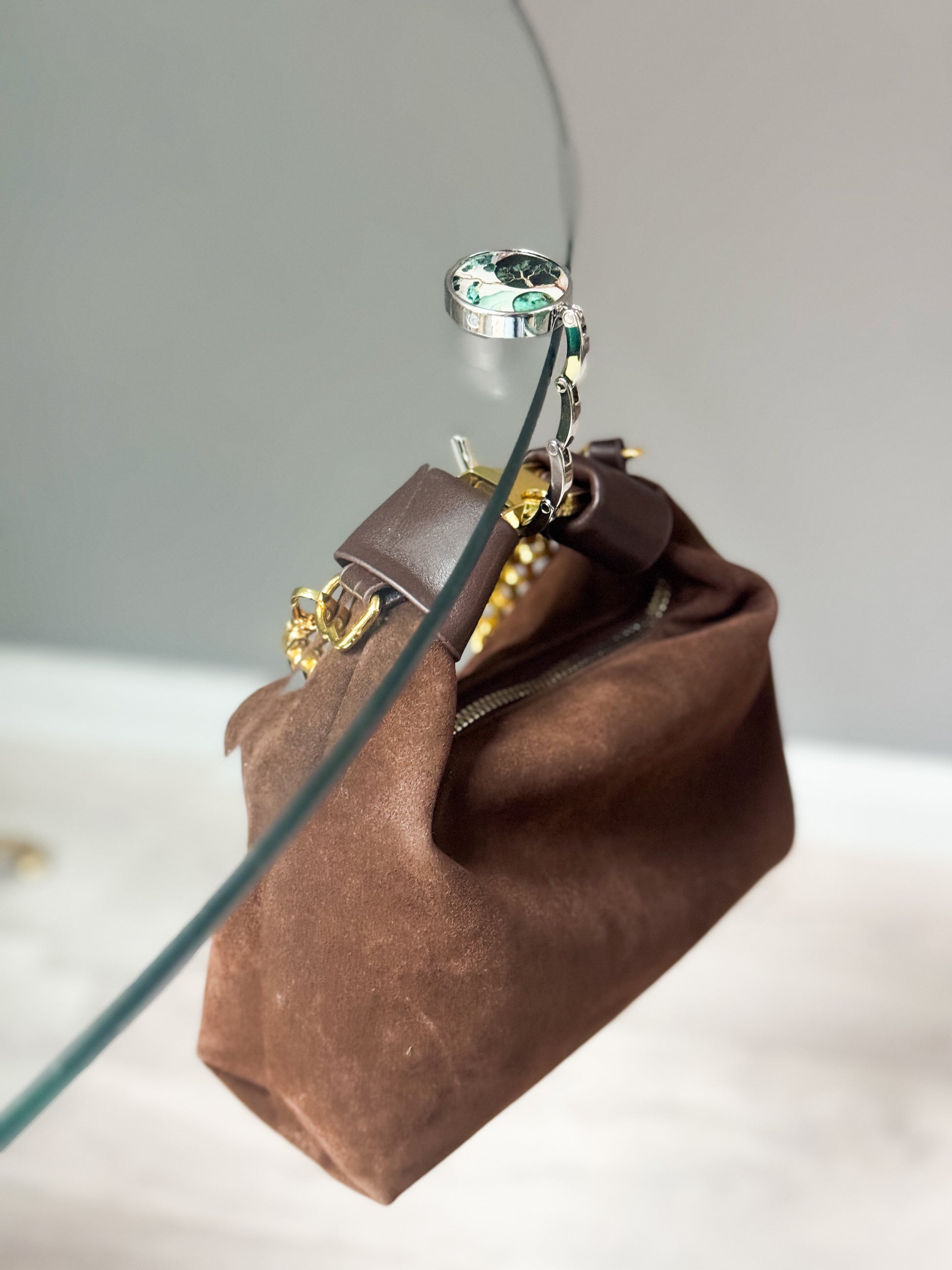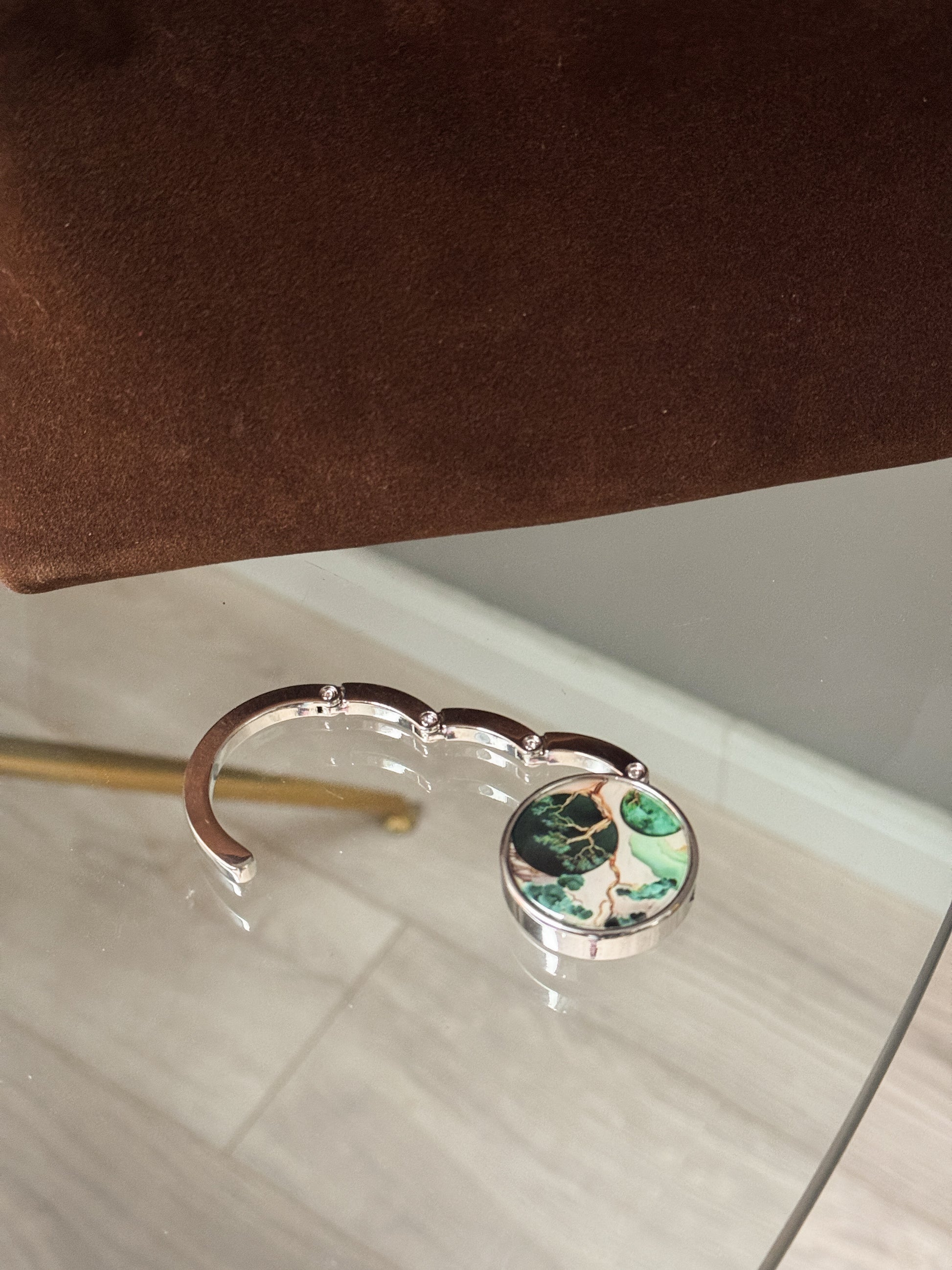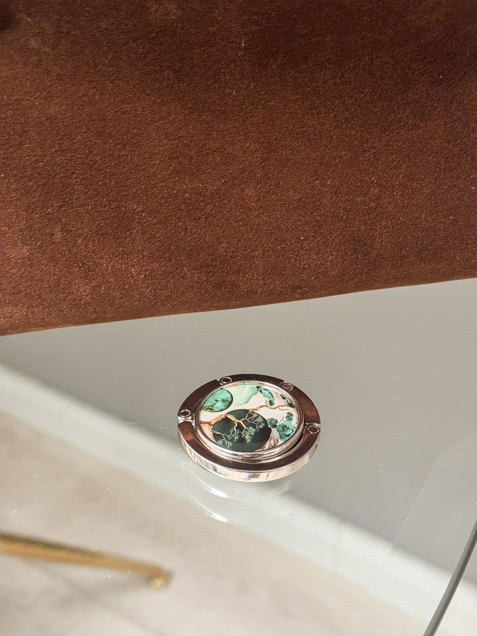 Katras dāmas somiņā jābūt šim "must-have" aksesuāram, jo katrai bijusi reize, kad aizej uz restorānu, bāru, skaistumkopšanas salonu, konsultāciju, BET nav kur nolikt somiņu! Tā parasti tiek iespiesta aiz muguras vai neērti turēta klēpī, tamdēļ palīgā nāk šis monētas izmēra turētājs, kuru ērti piestiprina pie galda virsmas. Tam apakšā ir silikona pretslīdes materiāls, kas nodrošina, ka somiņa turēsies, nenokritīs, savukārt, Tu varēsi nesatraukties par to!
